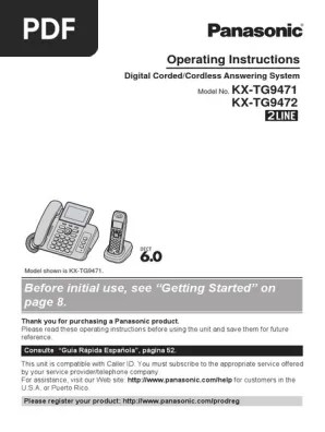 Este manual pertenece a la categoría teléfonos dect / voip y ha sido calificado por 1 personas . Before initial use, see "getting . Additional and replacement handset are no longer available for this model. Tg9471_qg(e).fm page 1 wednesday, june 22, 2011 2:26 pm model no. Page 1 operating instructions digital corded/cordless answering system model no.
